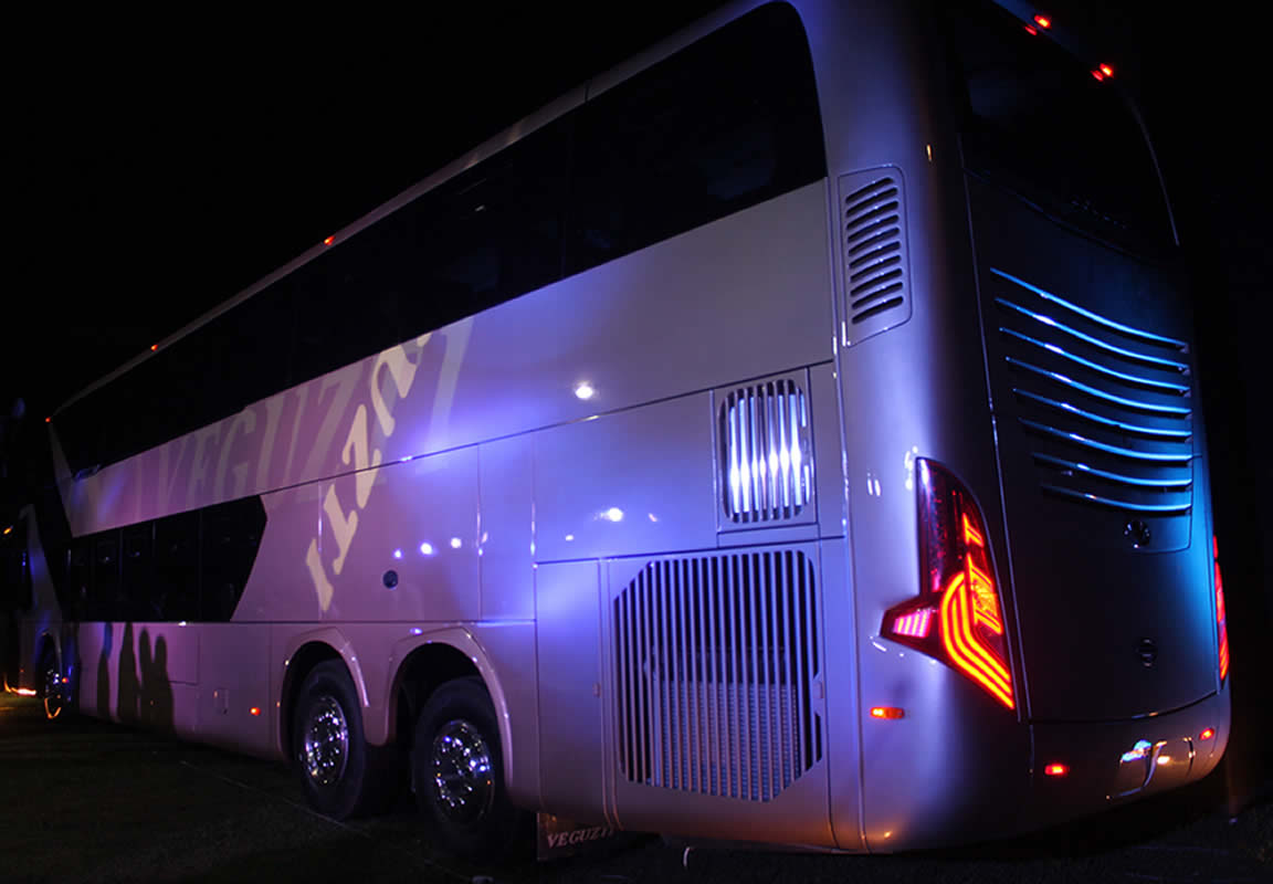 La marca de buses Veguzti presentó su nuevo vehículo para el transporte público, se trata del Diplomatic V12, un bus de doble piso que cuenta con una configuración VIP de 12 asientos cama en el primer piso y 48 asientos semi cama en el segundo.