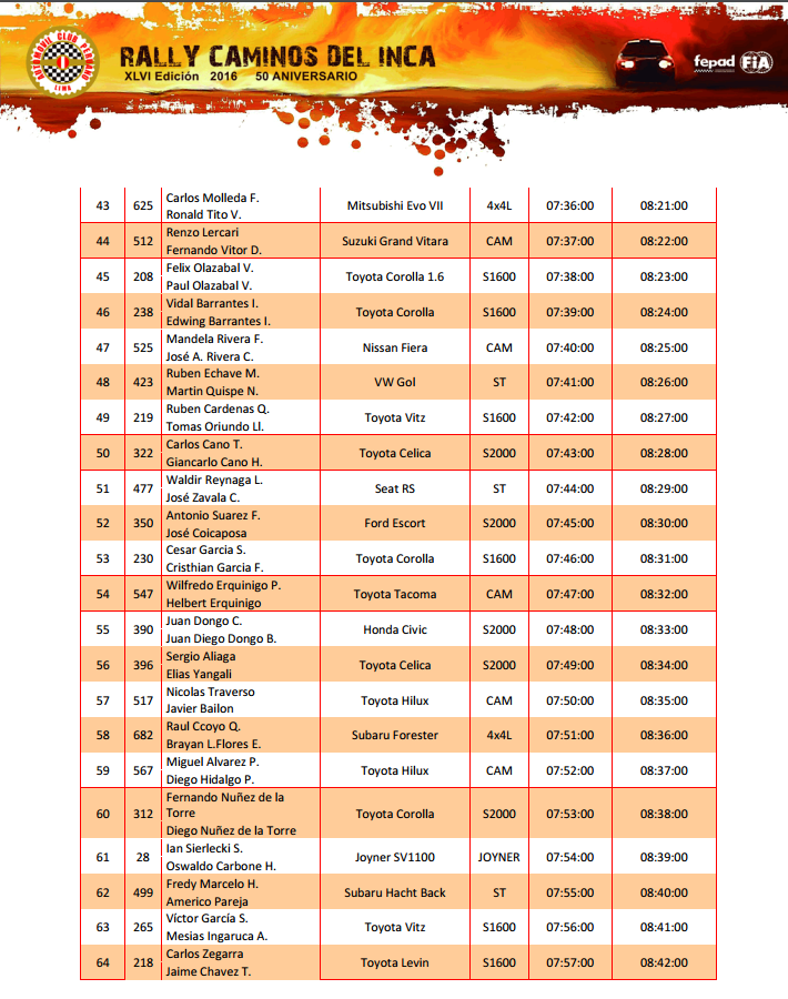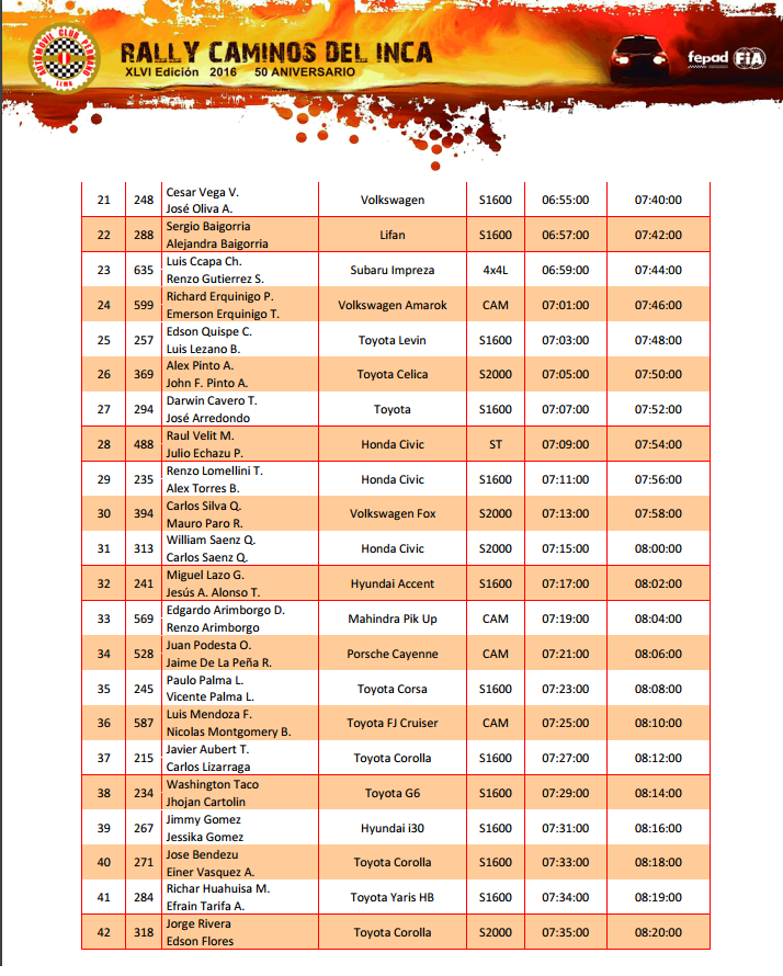 Caminos del Inca 2016, en su 46 edición y aniversario número 50, se toma el segundo día de descanso en Ayacucho, para que los equipos hagan nuevas estrategias de carrera y los mecánicos pongan el auto a punto.