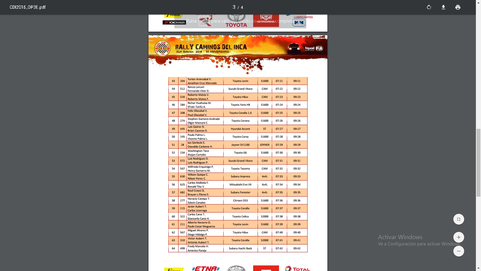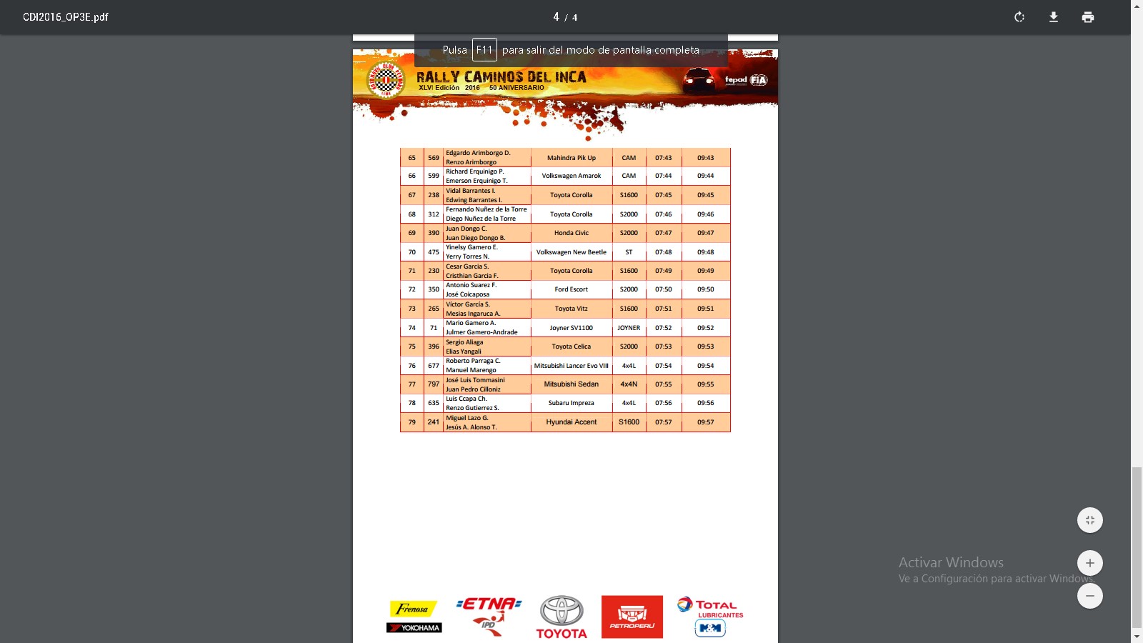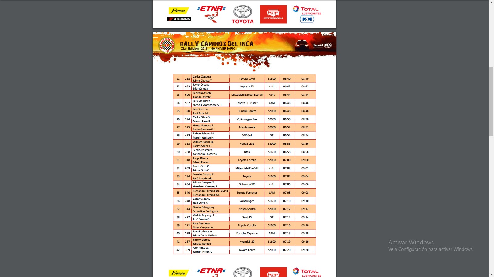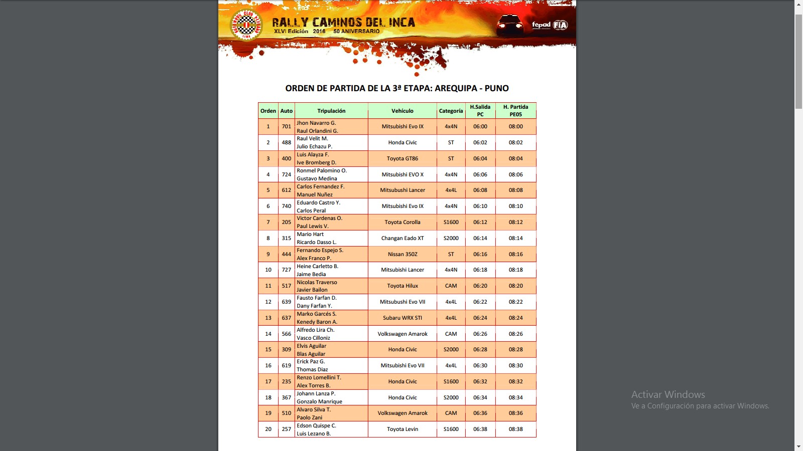 A las 08:10 a.m. parten los pilotos por la tercera etapa del Rally Caminos del Inca. Como se recuerda, hoy habrá tres especiales cronometrados y el destino será Puno. Este es el orden de partida.