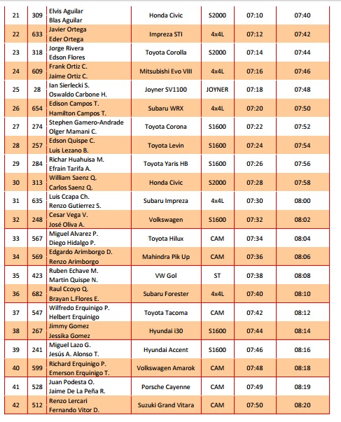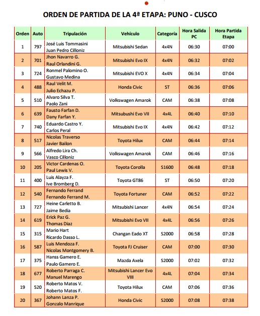 Este es el orden de partida para la cuarta etapa de Caminos del Inca 2016.