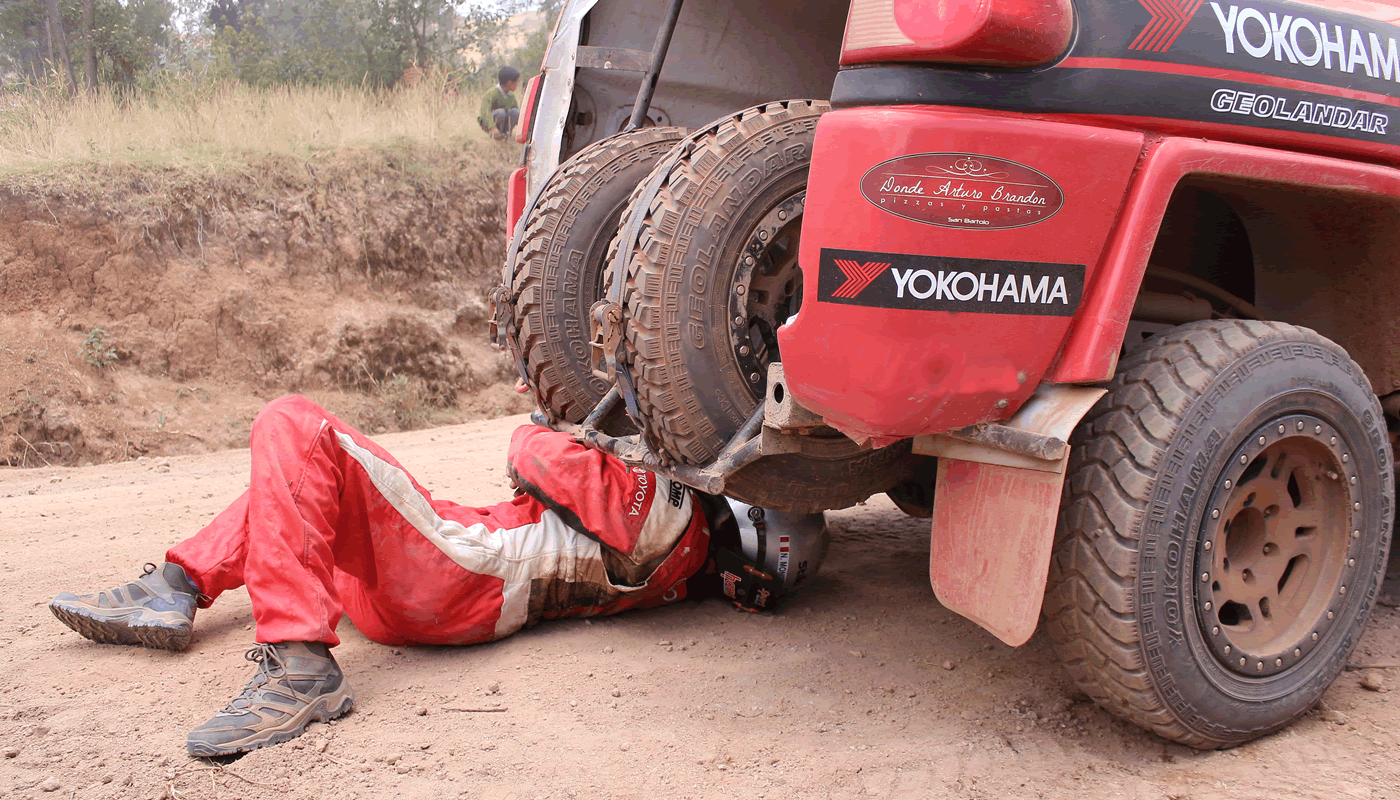 Precisamente pasando Tres Cruces en Ocobamba, el piloto Alfredo Lira y su copiloto Vasco Cillóniz tuvieron un problema en su camioneta se le rompió la barra de dirección izquierda de su vehículo quedando varados un buen rato.