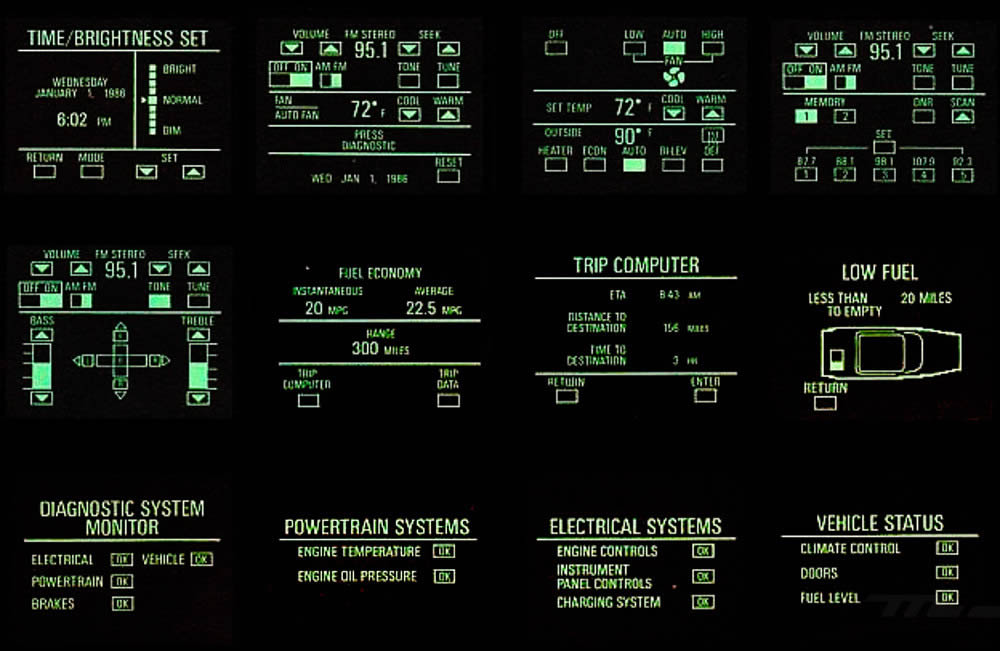 Se trataba de una pantalla verde de 9 pulgadas en la que se podía acceder a los distintos menús que ofrecía el auto, como la radio, computadora a bordo, diagnóstico del vehículo y hasta el aire acondicionado. Sin embargo, al poco tiempo dejaron de ponerla, pues los usuarios no lo veían como algo práctico.