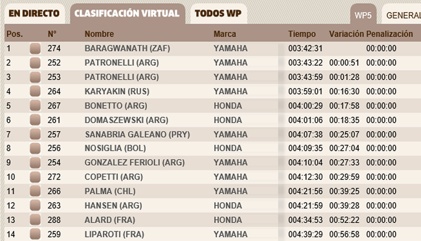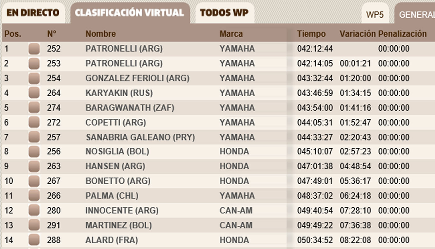 En esta fase, el piloto peruano que disputaba la punta, Alexis Hernandez sufrió nuevamente desperfectos con su Iritrack que lo llevó a “desaparecer” de los Way point. Por ello, se debe esperar que llega a la meta para tener sus resultados oficiales.