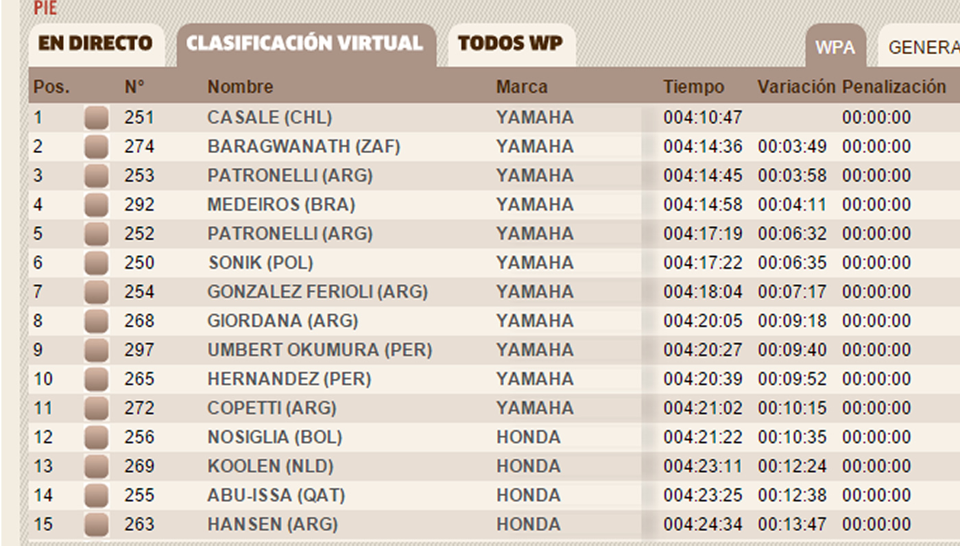Ya en el WP3, el chileno Casale, campeón de la categoría en el 2014, tomó la punta y no la soltó. A partir del WP4, Ignacio comenzó a acelerar y ampliar su ventaja frente a los hermanos Marcos y Alejandro Patronelli, quienes amenazaban la tranquilidad del puntero.
