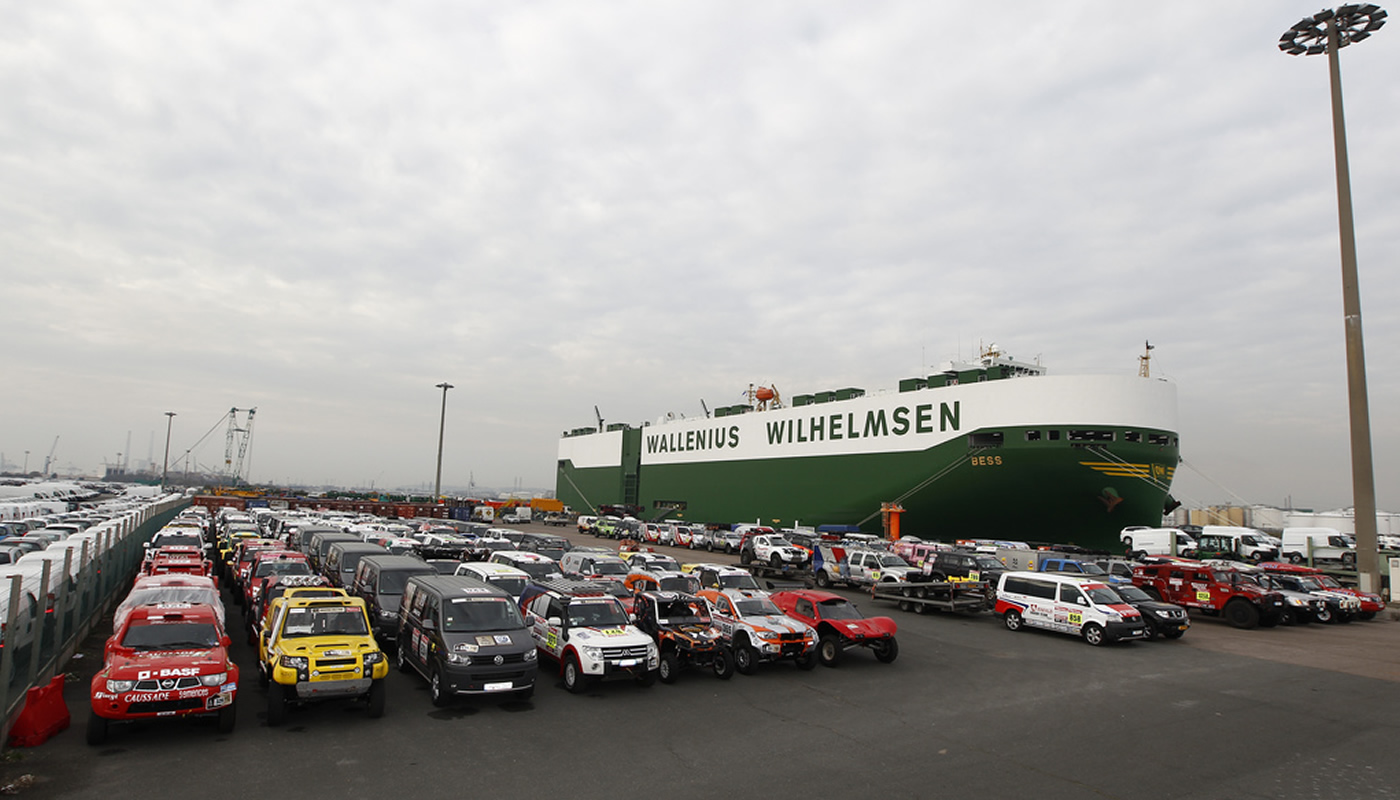 Autos, motos, quads y camiones de competencia, asistencia, prensa y el resto de los autos que conforman la caravana europea deben presentarse en el muelle donde zarpara el barco encargado de transportar aproximadamente 600 autos.
