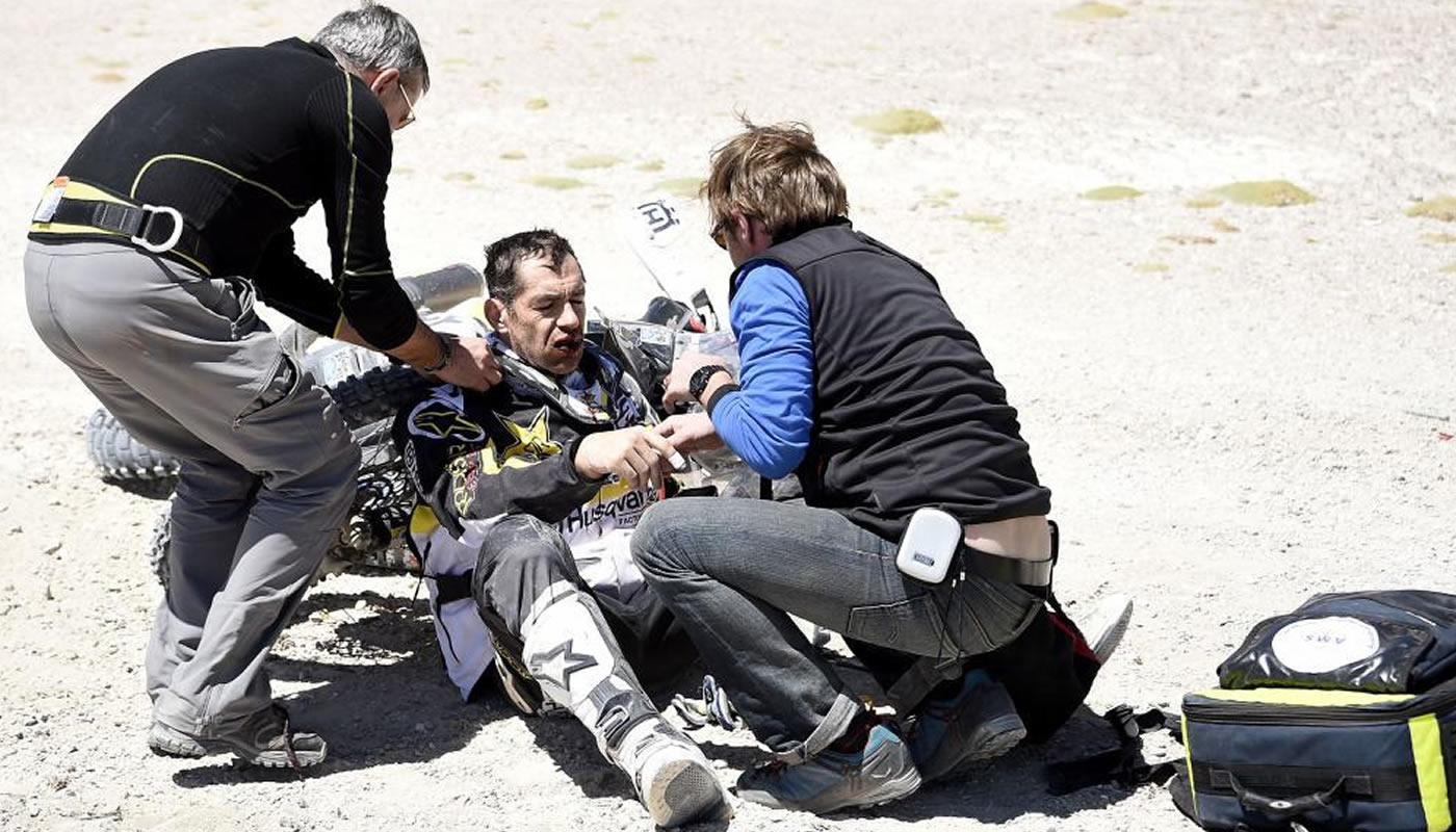 La exigente sexta etapa del Dakar por el territorio boliviano alrededor del Salar de Uyuni volvió a estar teñida de solidaridad, cuando el español Gerard Farrés (KTM) detuvo su marcha para auxiliar al portugués Ruben Faría (Husqvarna), que sufrió una fractura de muñeca.