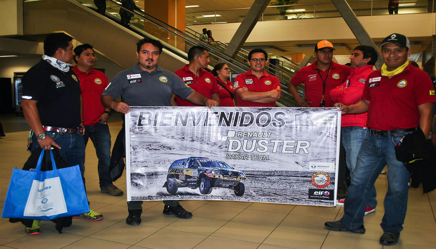Aproximadamente a las 11:30 pm del pasado lunes 01 de enero aterrizó el vuelo desde Buenos Aires que abordaba a la tripulación argentina de Renault Duster, la misma que estará participando en en el próximo Dakar, encabezados por Emiliano Spataro y Santiago Hansen, piloto y copiloto respectivamente.