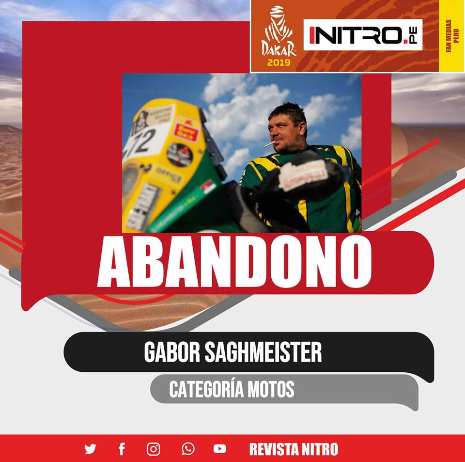 Pero nadie terminó más afectado que el serbio Gabor Saghmeister quien es nada más y nada menos que una leyenda dakariana. Con 47 años a cuestas, este piloto serbio – que tiene diez Dakar en su haber – abandonó por tercera vez en el Dakar.