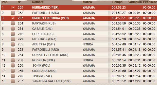 Al enterarse del nuevo resultado que lo pone en segundo lugar, y es que el piloto no resulta favorecido con el recorte de recorrido que por la tarde hizo la ASO, Hernández con el cambio supera esta vez por cuatro segundos al argentino.