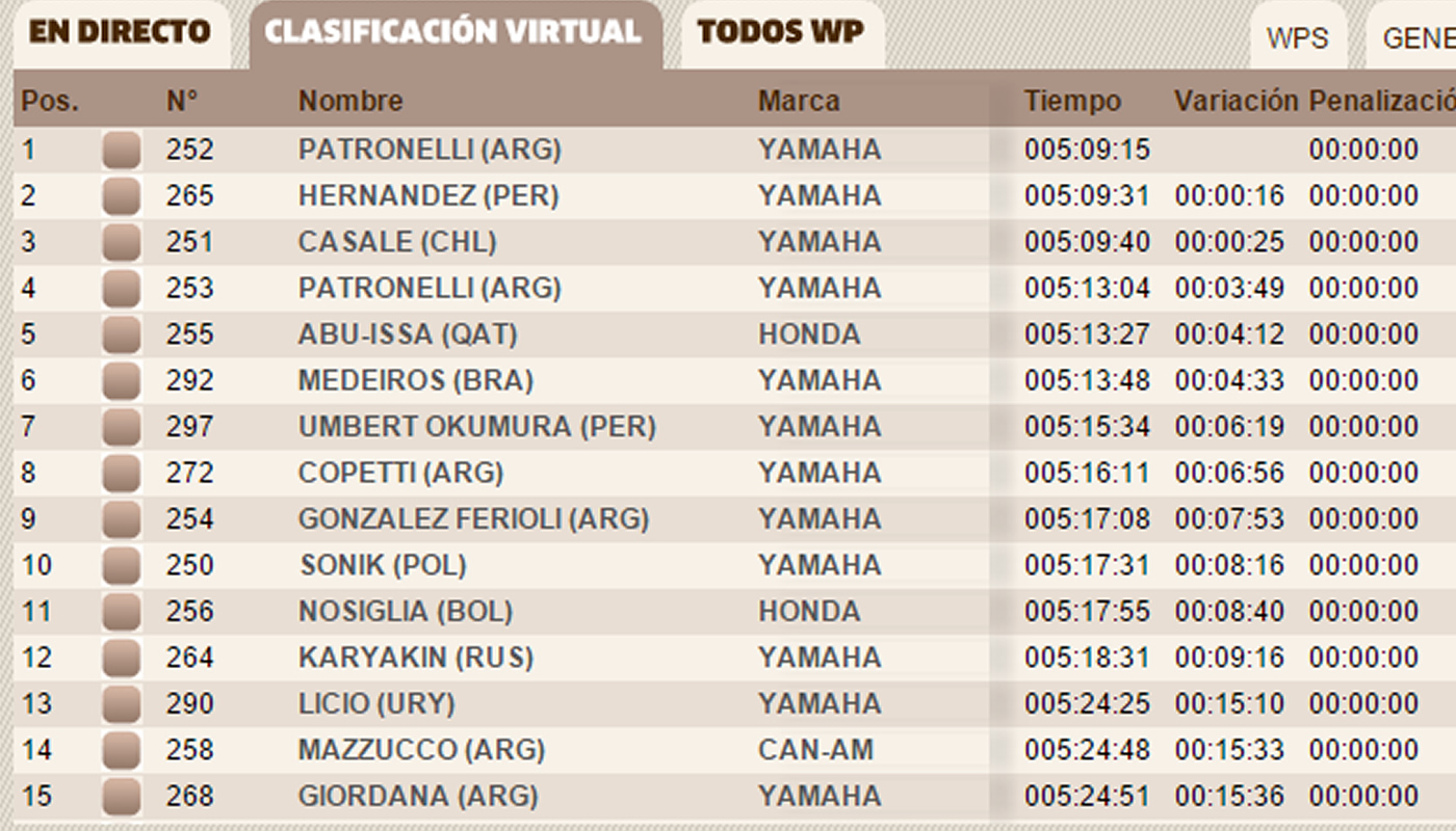 En ese sentido, la sorpresa de la jornada fue Alexis Hernández, quien inició la etapa en la duodécima posición y fue escalando constantemente hasta culminar en segundo lugar a solo 16 del líder. Hernández alcanzó la punta en el WP10, sin embargo, la experiencia de Patronelli pesó más.