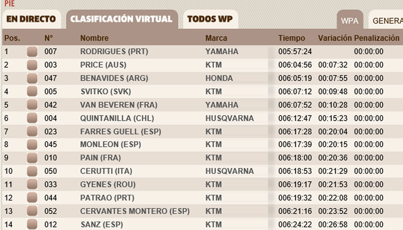Tabla de Posiciones de la Etapa 12 del Dakar
