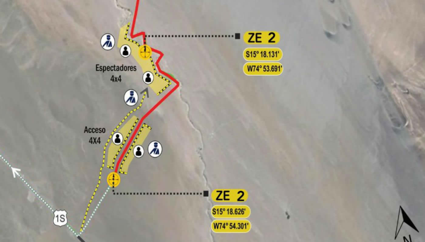 Acceso: En el km 509 de ruta Panamericana, la carrera cruza la ruta y la zona de espectadores se encuentra en la zona norte de la misma. Hay una zona se diferenciada para 4×4 que se encuentra a 2 mil metros hacia el norte sobre una quebrada.