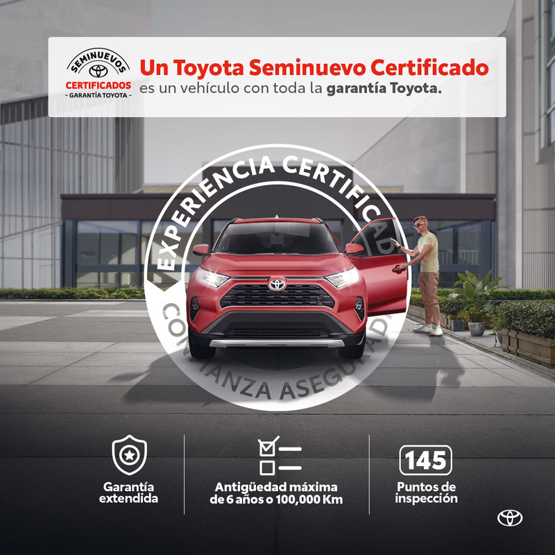 Toyota recibe en su red de concesionarios vehículos usados de cualquier marca. Esto permite que 1 de cada 10 clientes que compren vehículos nuevos puedan dejar su vehículo usado como parte de pago.