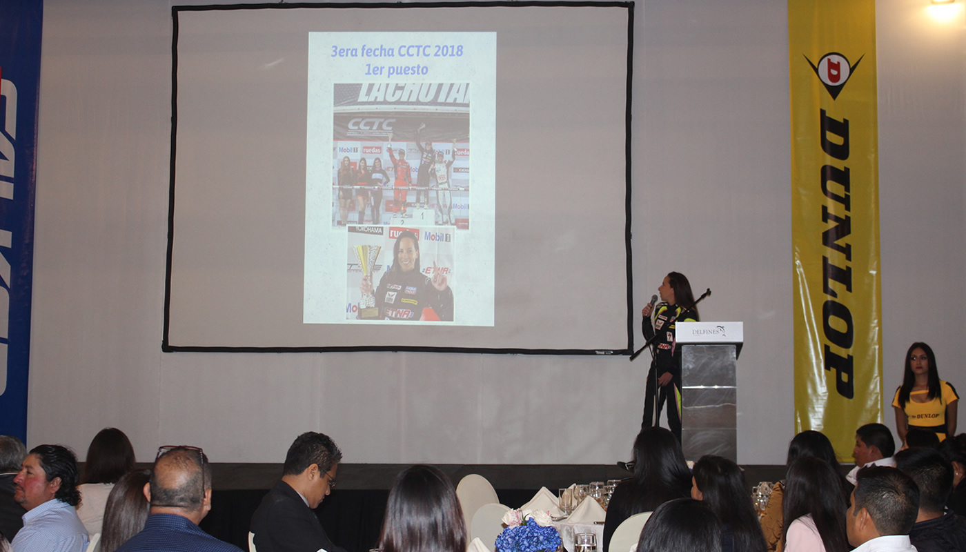 De igual forma, se presentó la piloto Veronica Peyón, ganadora tres veces consecutivas en la CCTC, quien dio a conocer su trayectoria en el mundo de las carreras. Al finalizar la noche, la empresa JCH Llantas en representación de su Gerente Comercial, José Mamani, anunció el inicio de la noche de ventas con un descuento que solo los presentes serían capaces de adquirir.