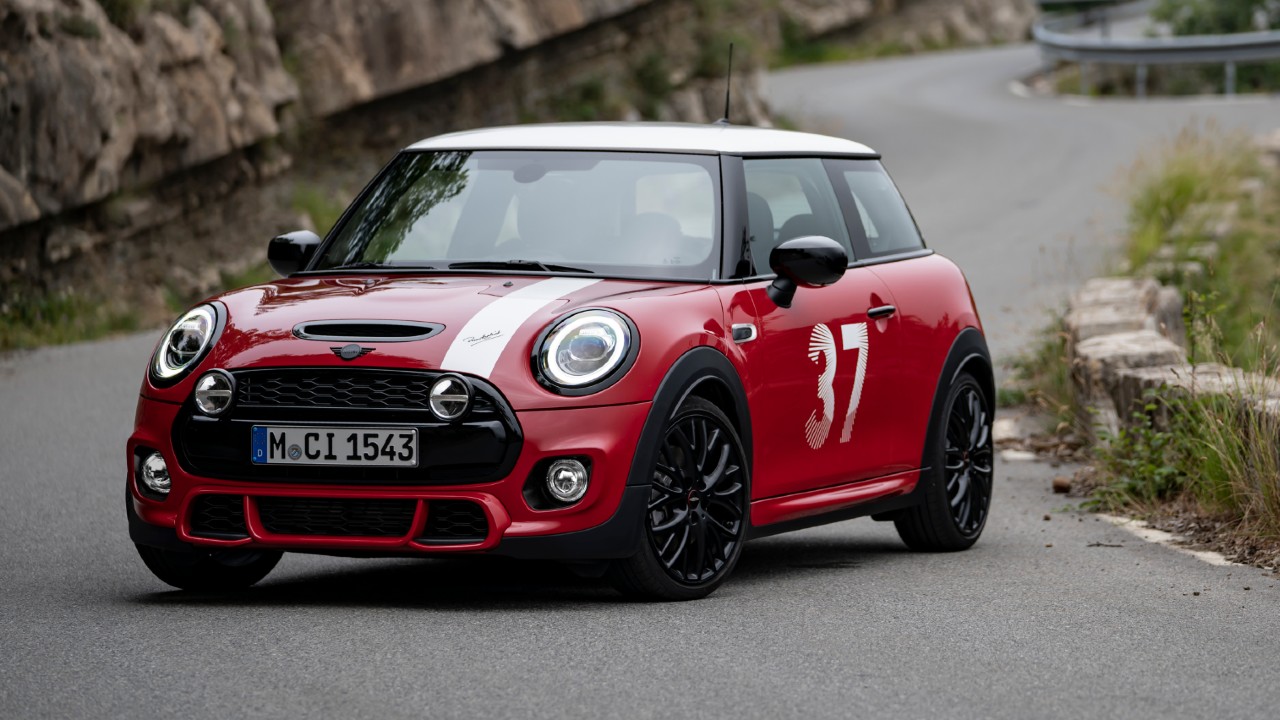Otras características inconfundibles en el exterior son los faros LED y las luces traseras en diseño Union Jack, adhesivos con la inscripción “Paddy Hopkirk Monte Carlo” y una sola franja blanca en el capó en el lado del conductor, que al igual que el portón trasero de la edición lleva la firma. Además, la famosa combinación de números y letras 33 EJB de la matrícula del automóvil ganador en Monte Carlo en 1964 se muestra en la banda del capó mediante gráficos de efecto 3D.