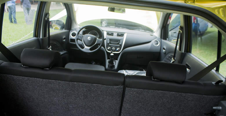 En el interior, el nuevo Celerio destaca por su mayor espacio. Con respecto a la generación anterior el auto ha crecido tanto en largo como en altura lo que genera mayor espacio en ambas filas de asientos. El habitáculo ha sido creado pensando en la comodidad de los ocupantes y en el conductor donde los distintos elementos han sido distribuidos para facilitar la conducción. El ángulo de apertura de las cuatro puertas también es bastante amplio lo que permite un ingreso cómodo al vehículo.