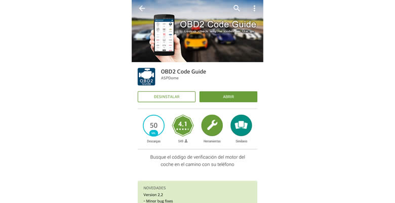 Para la lectura de los códigos de averías , los cuales fueron  obtenidas  con el widget "Fault Codes" del Torque Pro o Lite, utilizaremos una aplicación que se encuentra en Play Store llamada “OBD2 Code Guide”.