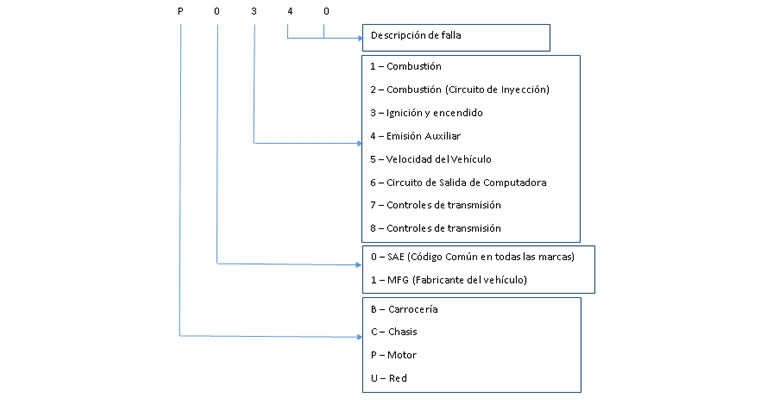 Finalmente detallamos la nomenclatura de las averías para lo cual tomares como ejemplo: El Vehículo Hyundai Matrix 2004 con Código de Avería P0340.