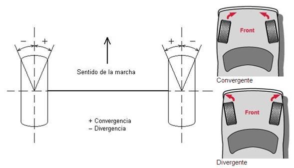 Ángulo de convergencia: Con una vista superior del vehículo, las ruedas deben presentar un paralelismo perfecto, evitando que apunten hacia el interior (convergencia) o hacia el exterior (divergencia)