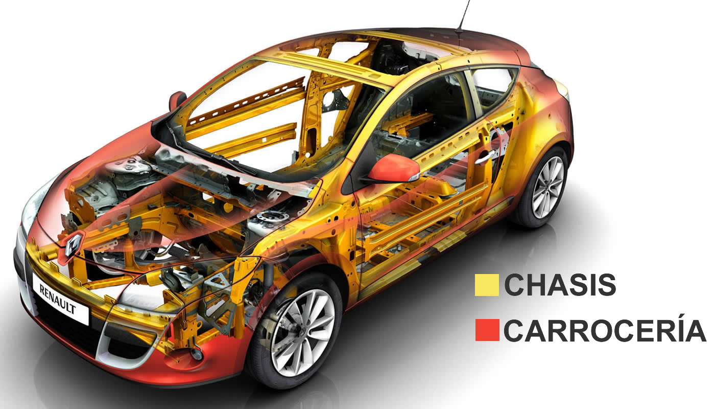 El chasis es una estructura interna del vehículo que sostiene, forma y aporta rigidez al mismo. Este integra y sujeta todos los componentes mecánicos del vehículo incluyendo la carrocería.
