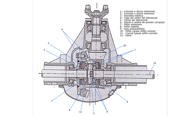 El grupo reductor y diferencial consta de un juego de piñones que actúan de elemento reductor y otro grupo de piñones encargados de hacer la función diferencial.
