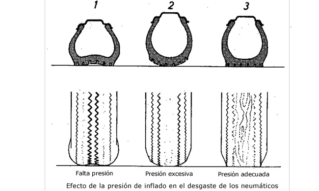 En la mayoría de las llantas las presiones varían entre 1,93 y 2,41 bar. Por consecuencia menos presión en las llantas causa mayor consumo de combustible, mayor desgaste de llantas, mayor degaste del sistema de dirección.