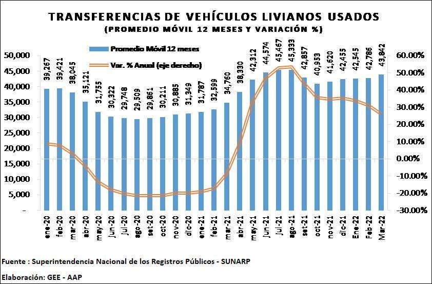 En el primer trimestre del 2022 las transferencias de vehículos livianos usados mantuvieron su comportamiento creciente, llegando a las 162,354 unidades, cifra mayor en 11.4% respecto a similar trimestre del 2021 y en 36.9% con relación a igual periodo del 2019, un año prepandemia, así lo refirió la Asociación Automotriz del Perú (AAP).