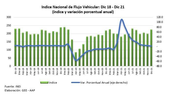 Luego de revisar la información elaborada por el Instituto Nacional de Estadística e Informática (INEI), la Asociación Automotriz del Perú (AAP) indicó que el Índice Nacional del Flujo Vehicular, promedio del 2021, y que reporta el movimiento de vehículos ligeros y pesados por las garitas de peaje, se elevó en 17.8% en comparación con lo registrado en el 2020,