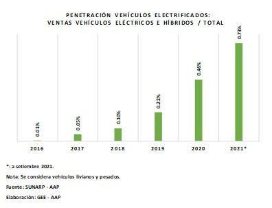 Sin embargo, no es suficiente, sostuvo. En la actualidad, la participación de los vehículos electrificados en la venta total de vehículos nuevos, livianos y pesados, es de 0.73%, superando el 0.46% del 2020 y el 0.22% del 2019. “No obstante, a pesar de estos resultados, las cifras aún son bajas al compararlas con otros países de la región”, refirió el Gerente de Estudios Económicos de la AAP tras anotar que, “por ejemplo, en Colombia, uno de los países latinoamericanos que más está impulsando el uso de dichos vehículos, se vendieron entre enero y setiembre 11,193 unidades, 272.1% más que hace un año, siendo su participación en el total de ventas de vehículos livianos y pesados un 6.28%”.